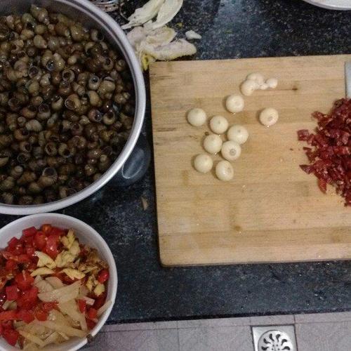步骤1、买回来的田螺剪掉屁股放清水里养三四小时,不急的话就放一晚,盆里放点铁东西田螺吐沙更快更干净,浮在水面的都是牺牲掉的捞起来扔掉!(养的时候不要放油、盐什么的容易死)