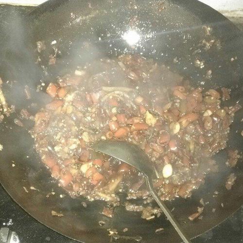 步骤3、精彩时刻来了,先热锅把锅烧烫加一勺油渍一下锅然后倒出再往锅里倒入菜籽油加入适量化猪油(这样才不会在炒料的时候出现粘锅的问题),油温控制住不要太高,这时加入豆瓣酱小火炒下放入香辣酱、干辣椒段、花椒、八角、三萘等大料,中低温慢慢炒,油温一定控制好不行的童鞋们就关掉火,不够温又再开火千万不能糊(这是整个做菜过程最享受的时刻了,味道好不好关键还得看底料炒得怎么样),直到感觉锅里的酱料都快没剩多少水分的时候放入大葱段、泡姜、泡椒、泡菜,中火翻炒!