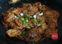 步骤5、倒入油面筋翻炒,加干辣椒,1勺蚝油,适量冰糖,少量老抽和盐调味。