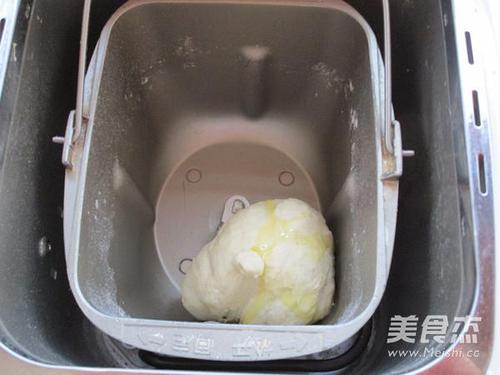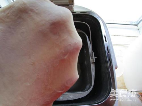 步骤2、面包桶内依次加入牛奶,盐,白糖,面粉和酵母