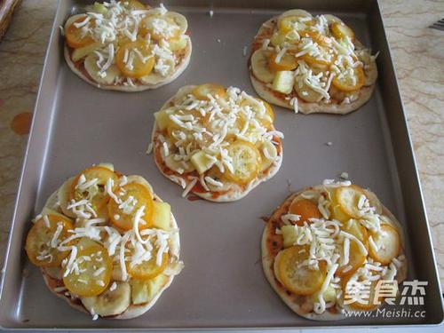 步骤6、发酵面团的同时把馅料准备好(苹果,香蕉,金桔,菠萝)