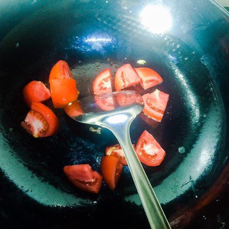 步骤7、鸡蛋盛出之后不用放油,直接放入西红柿