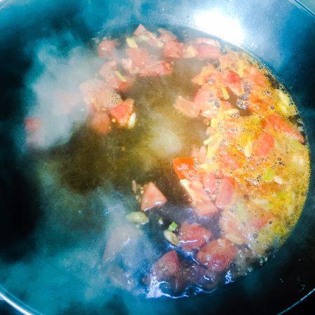 步骤8、西红柿翻炒放入小葱