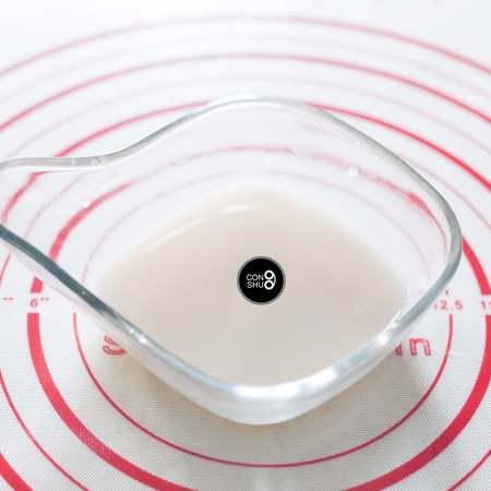 步骤2、首先将酵母、糖和适量温水(40~50ml左右)混合均匀,静置10分钟。当液体中陆续有泡泡冒出,酵母就被充分唤醒了。酵母很喜欢糖,在唤醒酵母的过程中,加入糖可以让酵母变得更为活跃,温水也是同样的道理。这里切勿使用开水,会将酵母烫死。