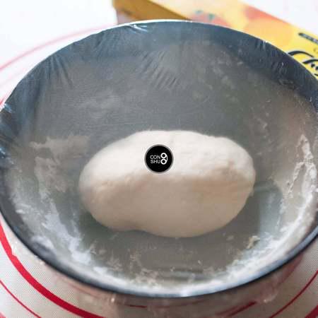 步骤5、揉好的面团放在碗里,覆上保鲜膜,室温25摄氏度下,发酵30分钟左右。如果室温偏低,发酵时间需要适当延长。面团发酵到按下慢慢回弹,不会出现裂纹为宜。