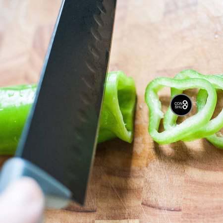 步骤7、青椒纵向切割能呈现可爱的圈圈状断面,放在披萨上层会比较漂亮。