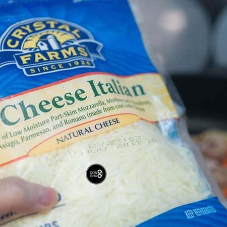 步骤12、马苏里拉芝士是披萨拉出长丝的关键,可以尽量放多一些。而葱姐是芝士深度爱好者,怎会放过一次享受6种不同芝士的体验。