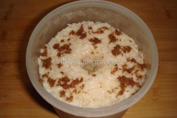 饭烧好后待冷却,准备一杯冷开水将半包甜酒粉到入拌均后加入冷却的米饭中。