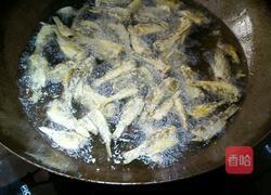 步骤4、油烧热大概6成热把小鱼房放锅里油炸成金黄色就可以装盘了