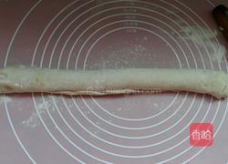 步骤3、这时把面团放入面板,稍揉几下用擀面杖擀薄点,淋少许香油抹匀在撒少许盐