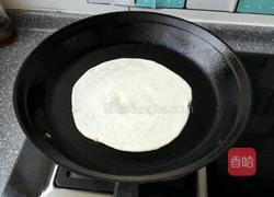 步骤9、用擀面杖把面挤擀圆,放入预热饼铛上