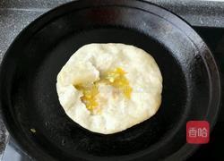 步骤12、继续烙制两面繁出饼花,这时灌入鸡蛋液也宁固了马上离火