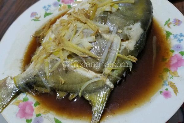 步骤3、出锅后姜汤和葱,姜都倒掉,放上新切好的葱姜丝,浇上调好的汁(汁:三汤匙红酒,一汤匙蒸鱼豉油,少许白砂糖)