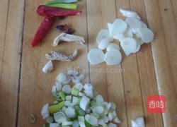 步骤3、食材有葱一段,蒜2瓣切蒜末,干姜片,红辣椒2个,八角一个