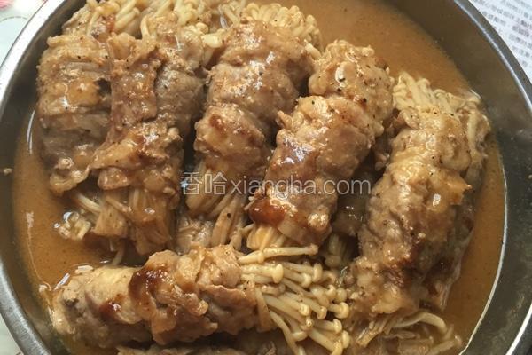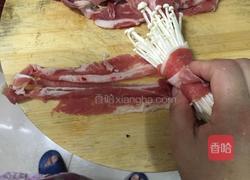 步骤3、把肥牛垫地,把金针菇放在上面,然后卷起来就好。
