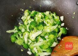步骤6、葱蒜略黄倒入西兰花翻炒