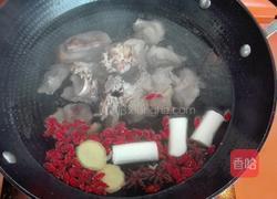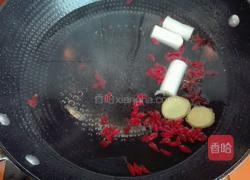 步骤5、炒锅倒入凉水,并放入姜片,葱段,八角,枸杞,开大火烧开。