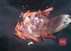 步骤5、油热后先下辣椒蒜头炒出香味!