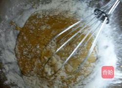 步骤2、把蛋黄打散加10克红糖和10克白砂糖搅拌融化后加入牛奶打均匀再加入玉米油搅打均匀。