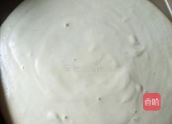 步骤4、把之前打好的蛋白霜和蛋黄液混合均匀,要用翻拌的手法具体操作步骤,我的配方中戚风蛋糕都有写过。如果担心自己火候掌握不好,建议还是铺上油纸以便脱模,我很懒哦,所以没有在金盘里面铺上油纸。三能金盘28X28的。蛋黄混合液倒入金盘中,要在桌面上轻轻震动几下再入烤箱。