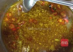 步骤5、油温滚热后关火离灶放入小米辣和蒜末,利用余热爆香。