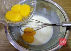 蛋白一定要打发到位,与蛋黄糊混合翻拌时不要划圈搅拌,要以切拌的方式拌匀,迅速快当,以免蛋白消泡。