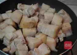 步骤7、炒至肥肉层自然析出油分,肉面干燥泛黄,肉质微微收缩。