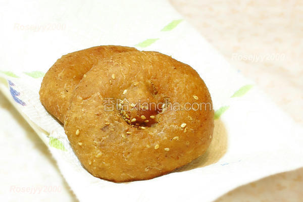 步骤8、放在四至五成的油锅里炸,炸到面团浮起,颜色变得金黄色,捞起滤油,就OK了。