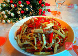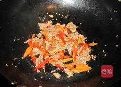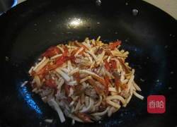 步骤3、再放进切好的辣椒丝加盐翻炒均匀。