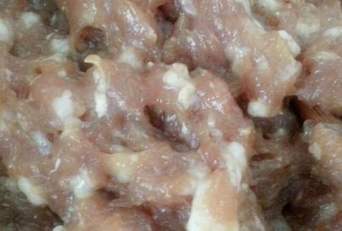 步骤4、猪肉剁碎加入耗油、盐、酱油