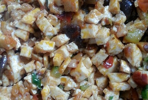 步骤6、用郫县豆瓣酱把以上材料用油炒下,放入盐和麻辣豆腐专用料
