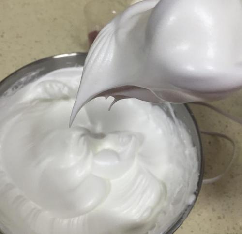 步骤4、打发蛋白成九成发。提起小弯钩。