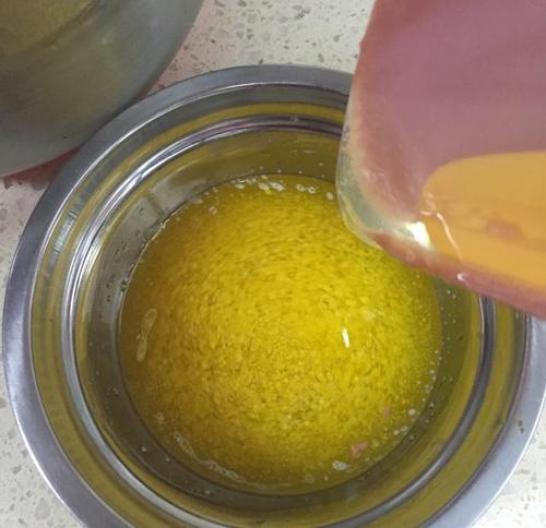 步骤12、取少量面糊加入融化的黄油中拌匀