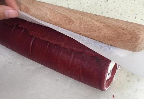 步骤21、卷好冰一个小时左右拿出来切掉两边不整齐的就可以了。