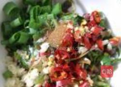 步骤6、自制调料碗,原材料就不展示了,个人可以根据自己的口味调,这个料碗中主要有:鱼腥草,葱,辣椒盐,鸡精,蒜泥