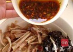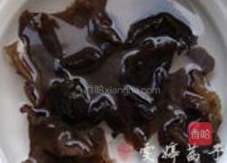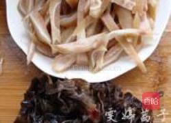 步骤2、黑木耳清洗干净,放入沸水中烫熟,然后放入冷水浸泡一会,切丝备用。
