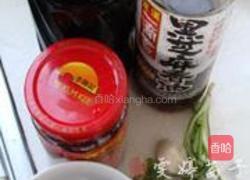 步骤4、密制红油辣椒:六月鲜酱油2勺(普通生抽也行),麻油1勺,镇江陈醋1勺,四川辣油半勺。李锦记豆豉油辣椒1勺,干辣椒切极碎放入1个,蒜瓣两个切成末,白糖小半勺,香菜一根切成细末,全部拌匀。
