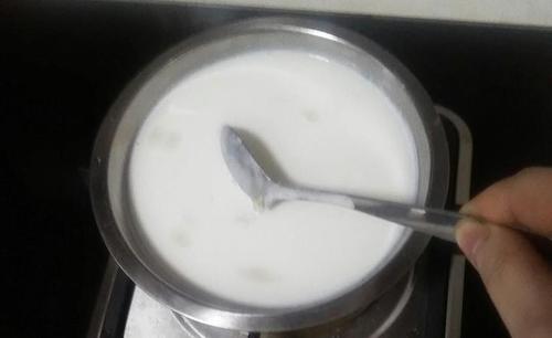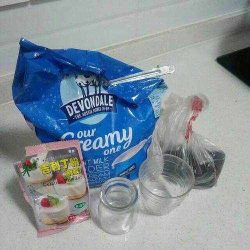 步骤2、奶粉,吉利丁粉,白砂糖加水煮开,直到吉利丁粉融化为止。