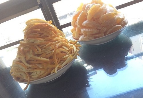 步骤1、这是16个橙子的肉和皮!我最爱这种掰法,吃橙肉的时候跟吃橘子一样,一瓣一瓣的!
