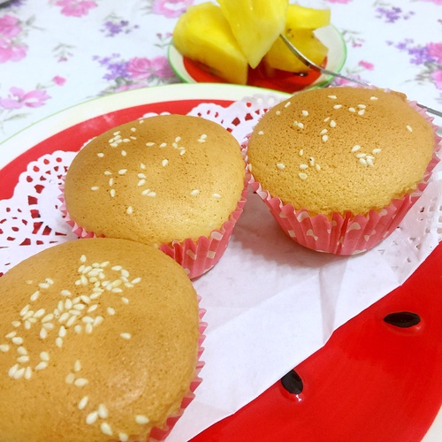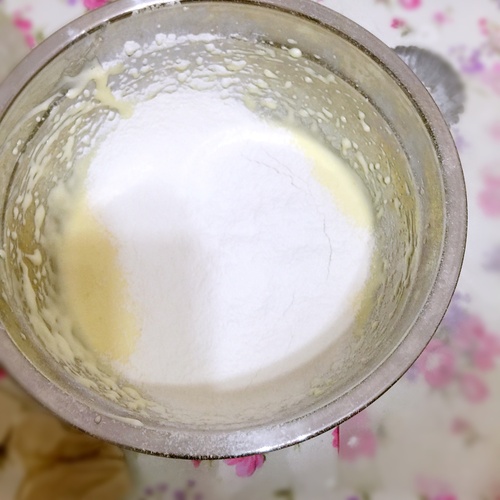 步骤1、鸡蛋2个 低粉50克 糖40克 芝麻少许