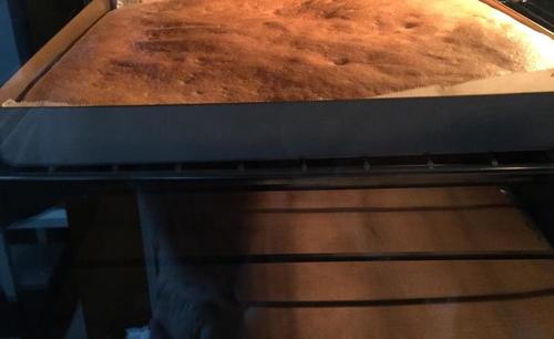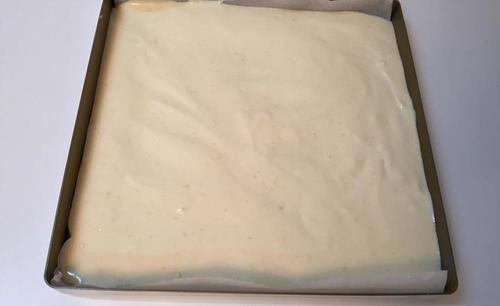 步骤3、倒入20*20的方盘,差不多是11、12寸蛋糕胚大小