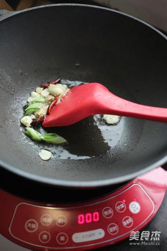 步骤6、入葱姜蒜八角煸出香味。