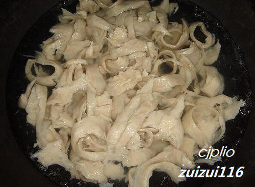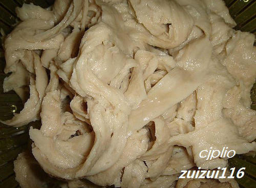 步骤3、先将水面筋撕成条,洗净