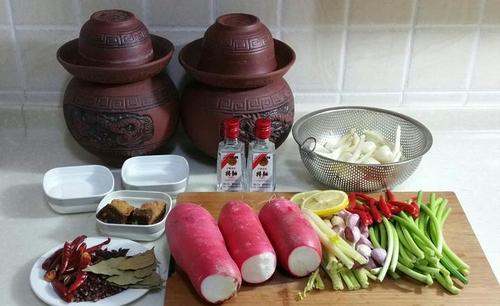 步骤6、25天后盐水很香醇,泡了5天的萝卜,口感脆爽,酸味纯正,泡姜时间要长点