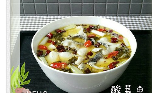 步骤20、酸菜鱼,美味!(煮酸菜鱼的泡青菜带叶要切粗点)