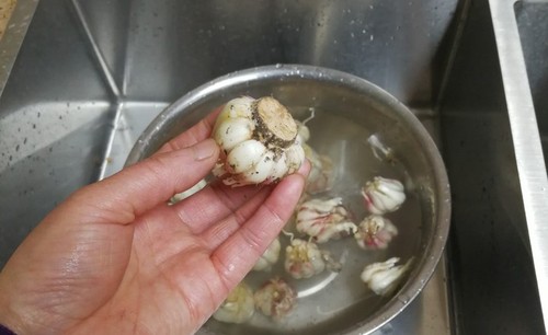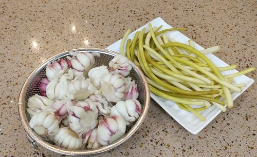 步骤22、每年三月底的蒜苔大量上市,便宜,四月份的嫩大蒜头可以多泡些来养泡菜水,以后泡什么菜都香!
