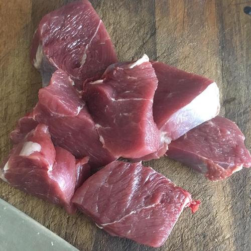 步骤3、牛肉切小块,放进锅里煮,大火煮开后,10分钟左右捞起,晾凉
