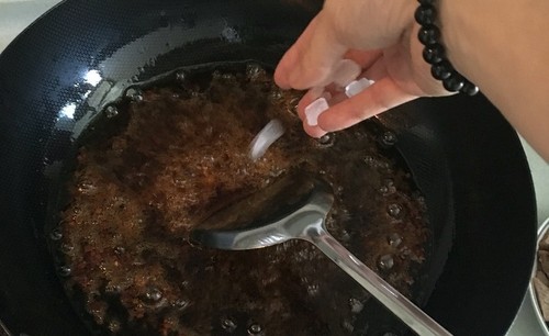 步骤5、锅里多放点油,油热后依次放入花椒(一小把)调料(半包)冰糖(半把)炒一会儿
