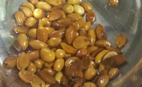 步骤3、凉油凉锅放入花生米炸香,滤出花生米,肉放油里煸炒,依次加入姜末、蒜末胡椒粉、花椒粉、油泼辣子、老干妈,每放进一样都要翻炒出香味,然后加入生抽、醋、两碗半水(这里用鸡汤味道应该更好)、加盐,水开时尝尝味道,差什么味就加什么