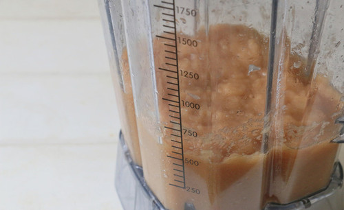 步骤3、把苹果倒入料理机里,加少许水,打碎。(如果用破壁机或者手持料理棒可以不加水)